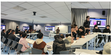 于老师首先从裸眼3D显示的技术背景出发,系统介绍了全息3D显示、体3D显示和光场3D显示等技术的原理和特点。进一步地,指出光场3D显示的关键问题是在有限的显示带宽下,综合提升核心技术指标,包括可视角、清晰度和立体感。为了攻克这一技术难题,于老师分享了相关创新成果,包括多源信息融合、信息冗余压缩、优化光场数据配置。于老师形象地总结为“开源—节流—物善其用”这一科学思想。然后,于老师还向同学们展示了最新的3D产品——静态光场成像设备,并且陈述了其在广告、展览、医疗等领域的应用。