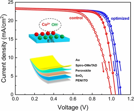 标题:Efficient Flexible Perovskite Solar Cells with Reduced Hysteresis Employing Cobalt Nitrate Treated SnO2