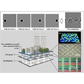 摘要:The depth of focus (DOF) of a lens is a crucial parameter in glasses-free 3D displays that affects the viewing distance range. Here we proposed a vector light field display based on intertwined flat lens for extended viewing distance. The gray-scale diffractive lens (GDL) is designed and fabricated with extended DOF for red (658 nm), green (532 nm), and blue (450 nm) colors. By integrating the intertwined GDLs with a liquid crystal display, four views form a smooth horizontal parallax with a cross talk below 26% over a viewing distance from 24 to 90 cm. The enhancement of the DOF is 1.8×104-fold. The light efficiency of the pixelated GDL reaches 82%. The proposed vector light field 3D display has the advantages of a thin form factor, high efficiency, high color fidelity, and large viewing distance. The potential applications include portable electronics, 3D TVs, and tabletop displays.