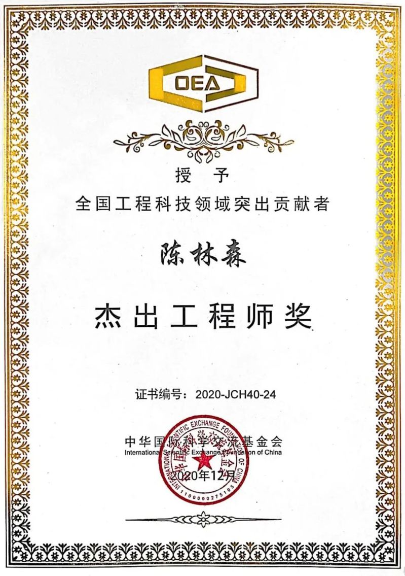 中华国际科学交流基金会“杰出工程师奖”于2011年经国家科学技术部和国家科学技术奖励工作办公室批准,由中华国际科学交流基金会设立并承办,旨在奖励全国范围内生产、建设、科研一线从事工程技术工作,并作出杰出贡献的专业技术人员。该奖项每两年评选一次,是目前涵盖领域最广、最具权威性的工程技术人员奖项。本届评选出“杰出工程师奖”获奖人70位,其中40位“杰出工程师奖”获奖者、30位“杰出工程师青年奖”获奖者。