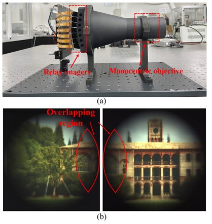 大视场高分辨成像系统在军事侦查、图像识别、目标探测等领域具有广泛应用。然而由于几何像差和探测器尺寸的限制,在光学成像系统中视场和分辨率是相互限制的,难以同时实现大视场高分辨成像。级联结构光学成像系统是同时实现大视场高分辨成像的最佳技术手段之一,其由初级同心球镜和次级中继成像光学系统阵列组成。目前,级联结构光学成像系统存在照度不均匀的问题, 由于相邻通道的次级中继成像光学系统须存在视场重叠,中继成像光学系统间由于物理空间受限而引入渐晕,造成各通道图像边缘视场处照度下降,即视场重叠区域存在像面照度不均匀与像质差的问题,增大了图像拼接的难度。